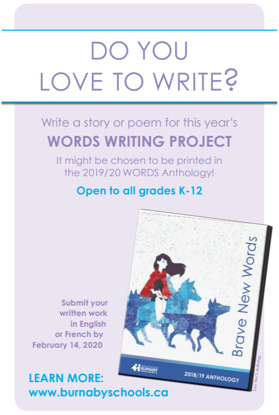 Burnaby School District Words Wrtiting Project which is open to all students from Kindergarten to Grade 12.